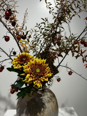【 老鴉柿 ・ マム ・ 紅葉雪柳 ・ コルク 】