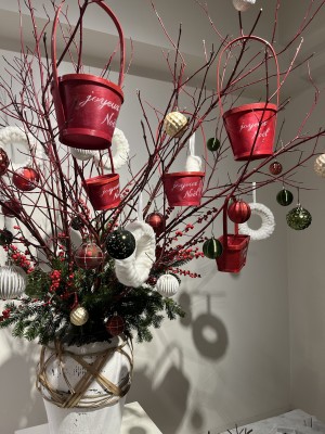赤と緑の鮮やかなコントラストが目を引き、フランス語で「Joyeux Noël (メリークリスマス)」
